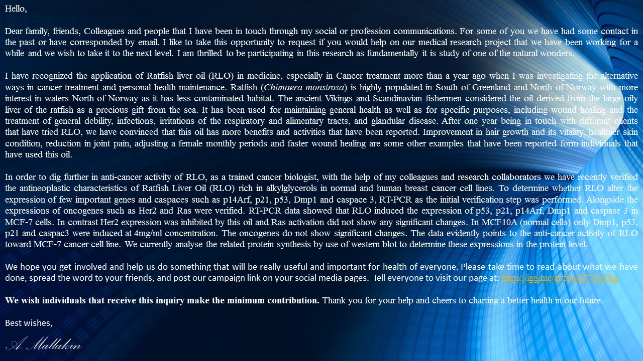 2/16 The Anti-proliferative and Anti-neoplastic Characteristics of RLO. Collaborative project with Tehran Universities to determine the wide characteristics of RLO.